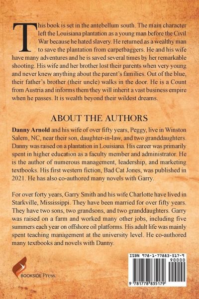 This book is set in the antebellum south. The main character left the Louisiana plantation as a young man before the Civil War because he hated slavery. He returned as a wealthy man to save the plantation from carpetbaggers. He and his wife have many adventures and he is saved several times by her remarkable shooting. His wife and her brother lost their parents when very young and never knew anything about the parent's families. Out of the blue, their father's brother (their uncle) walks in the door. He is a Count from Austria and informs them they will inherit a vast business empire when he passes. It is wealth beyond their wildest dreams.