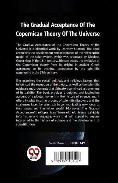 The Gradual Acceptance of the Copernican Theory of the Universe is a historical work by Dorothy Stimson. The book chronicles the development and acceptance of the heliocentric model of the solar system, which was proposed by Nicolaus Copernicus in the 16th century. Stimson traces the evolution of the Copernican theory from its origins in ancient Greek astronomy to its eventual acceptance by the scientific community in the 17th century. She examines the social, political, and religious factors that influenced the reception of the theory, as well as the scientific evidence and arguments that ultimately convinced astronomers of its validity. The book provides a detailed and fascinating account of a pivotal moment in the history of science, and it offers insights into the process of scientific discovery and the challenges faced by scientists in communicating new ideas to their peers and the wider world. Moreover, The Gradual Acceptance of the Copernican Theory of the Universe is a highly informative and engaging work that will appeal to anyone interested in the history of science and the development of scientific ideas.