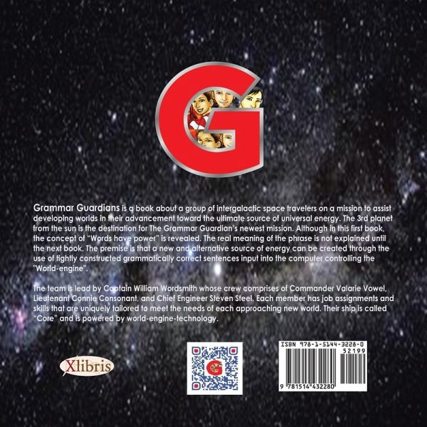 """The Grammar Guardians"" By: Bob A. Hall www.thegrammarguardians.com Captain - William Wordsmith Commander - Valarie Vowel Lieutenant - Connie Consonant Chief Engineer - Steven Steal The Grammar Guardians is a book about a group of intergalactic space travelers on a mission to assist developing worlds in their advancement toward the ultimate source of universal energy. The 3rd planet from the sun is the destination for The Grammar Guardian's newest mission. Although in this first book, the concept of ""Words have power"" is revealed. The real meaning of the phrase is not explained until the next book. The premise is that a new and alternative source of energy can be created through the use of tightly constructed grammatically correct sentences input into the computer controlling the ""World-engine"". The team is lead by Captain William Wordsmith whose crew comprises of Commander Valarie Vowel, Lieutenant Connie Consonant, and Chief Engineer Steven Steel. Each member has job assignments and skills that are uniquely tailored to meet the needs of each approaching new world. Their ship is called ""Core"" and is powered by world-engine-technology. The Grammar Guardians, while fun and exciting, is unique in that the book and website is a Trojan horse for a set of educational skills currently being taught in schools. Subsequent books and online gaming challenges evolve into learning lessons that focus on the seven critical learning objectives being taught in today's classrooms. The ""QR Code"" on specific page allows the reader direct access to additional online content focused on development of English grammar and usage when writing and speaking, development of capitalization, punctuation, and spelling when writing, knowledge of language and its conventions when writing, speaking, reading, or listening, determine or clarify the meaning of words and phrases, understand word relationships and nuances in word meanings, use of words acquired through conversations, and using phrases acquired through reading and being read to, using online interactive activities. On the surface, the readers of The Grammar Guardian books will enjoy the fun of imagining what will happen next. The fully online interactive experience will extend the readers involvement when visiting new stories and experiences on the www.thegrammarguardians.com website. Additional characters like Princess Preposition, Paul Predicate, Annie Adjective, Andre Adverb, Veronica Verb, Aaron Article, Peter Pronoun, Conner Conjunction, Nancy Noun, Mary Modifier, Sally Subject, and Isaiah Interjection are introduced in subsequent stories and serve as support to the original cast of heroes."