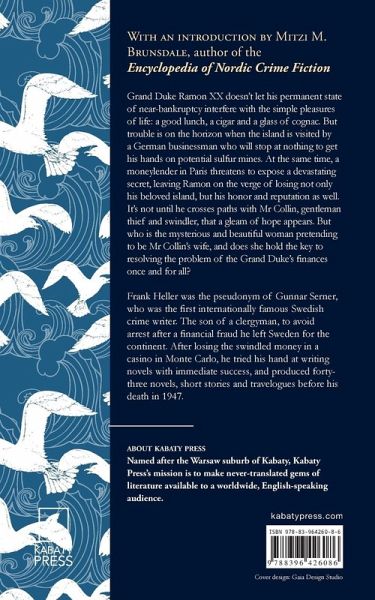 On the island of Minorca some things never change: the sun shines, the breeze ruffles the Mediterranean, and the Grand Dukes are eternally in debt.¿¿ Grand Duke Ramon XX doesn't let his permanent state of near-bankruptcy interfere with the simple pleasures of life: a good lunch, a cigar and a glass of cognac. But trouble is on the horizon when the island is visited by a German businessman who will stop at nothing to get his hands on potential sulfur mines. At the same time, a moneylender in Paris threatens to expose a devastating secret, leaving Ramon on the verge of losing not only his beloved island, but his honor and reputation as well. It's not until he crosses paths with Mr Collin, gentleman thief and swindler, that a gleam of hope appears. But who is the mysterious and beautiful woman pretending to be Mr Collin's wife, and does she hold the key to solving the Grand Duke's financial problems once and for all? Frank Heller was the first internationally famous Swedish crime writer. The son of a clergyman, to avoid arrest after a financial fraud he left Sweden for the continent. In desperate straits after losing the swindled money in a casino in Monte Carlo, he tried his hand at writing novels with immediate success, and produced forty-three novels, short stories and travelogues before his death in 1947. "A first-rate mystery thriller...A novel every one will enjoy" - The Sketch "A story of national bankruptcy, revolution and high adventure in the curious Grand Duchy of Minorca and elsewhere...It is all wildly impossible but none the less amusing on that account." - Westminster Gazette