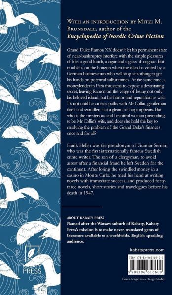 On the island of Minorca some things never change: the sun shines, the breeze ruffles the Mediterranean, and the Grand Dukes are eternally in debt.¿¿ Grand Duke Ramon XX doesn't let his permanent state of near-bankruptcy interfere with the simple pleasures of life: a good lunch, a cigar and a glass of cognac. But trouble is on the horizon when the island is visited by a German businessman who will stop at nothing to get his hands on potential sulfur mines. At the same time, a moneylender in Paris threatens to expose a devastating secret, leaving Ramon on the verge of losing not only his beloved island, but his honor and reputation as well. It's not until he crosses paths with Mr Collin, gentleman thief and swindler, that a gleam of hope appears. But who is the mysterious and beautiful woman pretending to be Mr Collin's wife, and does she hold the key to solving the Grand Duke's financial problems once and for all? Frank Heller was the first internationally famous Swedish crime writer. The son of a clergyman, to avoid arrest after a financial fraud he left Sweden for the continent. In desperate straits after losing the swindled money in a casino in Monte Carlo, he tried his hand at writing novels with immediate success, and produced forty-three novels, short stories and travelogues before his death in 1947. "A first-rate mystery thriller...A novel every one will enjoy" - The Sketch "A story of national bankruptcy, revolution and high adventure in the curious Grand Duchy of Minorca and elsewhere...It is all wildly impossible but none the less amusing on that account." - Westminster Gazette