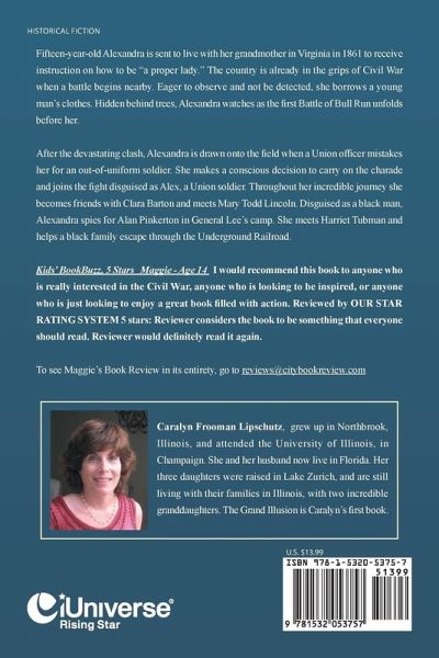 Caralyn Frooman Lipschutz, grew up in Northbrook, Illinois, and attended the University of Illinois, in Champaign. She and her husband now live in Florida. Her three daughters were raised in Lake Zurich, and are still living with their families in Illinois, with two incredible granddaughters. The Grand Illusion is Caralyn's first book.