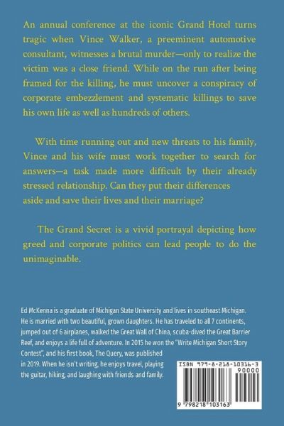 An annual conference at the iconic Grand Hotel turns tragic when Vince Walker, a preeminent automotive consultant, witnesses a brutal murder-only to realize the victim was a close friend. While on the run after being framed for the killing, he must uncover a conspiracy of corporate embezzlement and systematic killings to save his own life as well as hundreds of others. With time running out and new threats to his family, Vince and his wife must work together to search for answers-a task made more difficult by their already stressed relationship. Can they put their differences aside and save their lives and their marriage? The Grand Secret is a vivid portrayal depicting how greed and corporate politics can lead people to do the unimaginable.