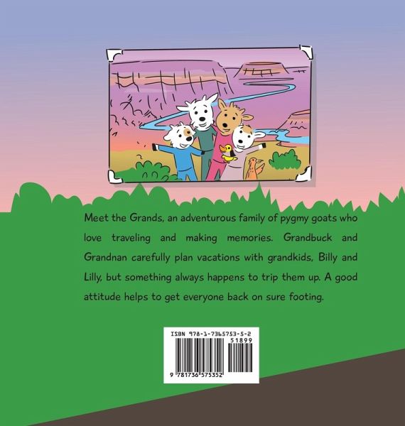 Pack your bags and get ready to go with The Grands! The third in a series of children's books featuring a family of pygmy goats who love to travel together. Rhythm and rhyme along with colorful illustrations will engage children and charm adults. Learn with the Grands that interrupted plans can turn into delightful surprises, and that "spending time together is the reason we go." A carefully planned trip to the Southwest is derailed by an unexpected detour. Visit three national parks with The Grands as they experience that "one perfect moment that stays." Are you ready to travel with your favorite pygmy goats? BOOK EXTRAS!Trip Journal Trip Planning Website