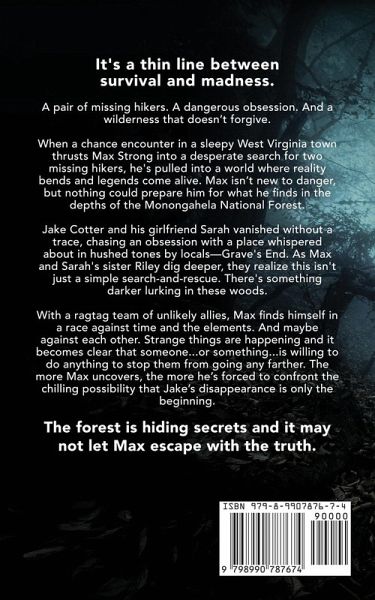 It's a thin line between survival and madness. A pair of missing hikers. A dangerous obsession. And a wilderness that doesn't forgive. When a chance encounter in a sleepy West Virginia town thrusts Max Strong into a desperate search for two missing hikers, he's pulled into a world where reality bends and legends come alive. Max isn't new to danger, but nothing could prepare him for what he finds in the depths of the Monongahela National Forest. Jake Cotter and his girlfriend Sarah vanished without a trace, chasing an obsession with a place whispered about in hushed tones by locals-Grave's End. As Max and Sarah's sister Riley dig deeper, they realize this isn't just a simple search-and-rescue. There's something darker lurking in these woods. With a ragtag team of unlikely allies, Max finds himself in a race against time and the elements. And maybe against each other. Strange things are happening and it becomes clear that someone...or something...is willing to do anything to stop them from going any farther. The more Max uncovers, the more he's forced to confront the chilling possibility that two missing hikers are only the beginning. Some graves don't wait for the dead.