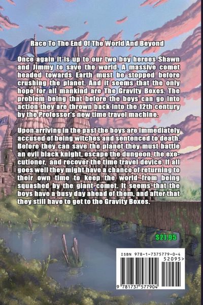Race To The End Of The World And Beyond Once again it is up to our two boy heroes Shawn and Jimmy to save the world. A massive comet headed towards Earth must be stopped before crushing the planet. And it seems that the only hope for all mankind are The Gravity Boxes. The problem being that before the boys can go into action they are thrown back into the 12th century by the Professor's new time travel machine. Upon arriving in the past the boys are immediately accused of being witches and sentenced to death. Before they can save the planet they must battle an evil black knight, escape the dungeon, the executioner, and recover the time travel device. If all goes well they might have a chance of returning to their own time to keep the world from being squashed by the giant comet. It seems that the boys have a busy day ahead of them, and after that they still have to get to the Gravity Boxes.