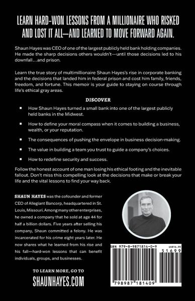 Learn hard-won lessons from a millionaire who risked and lost it all-and learned to move forward again. At 29, banker Shaun Hayes was on his way to his goal of becoming a millionaire. Guided by hustle and ingenuity, he purchased his first bank and was CEO of one of the largest publicly held bank holding companies in Missouri. For years, he was lauded as one of the Midwest's top entrepreneurs and riding high as a business leader and family man. He took the risks and made the sharp decisions others wouldn't- Until those decisions led him to his downfall ... and prison. Learn the true story of entrepreneur and multimillionaire Shaun Hayes's rise to the highest levels of corporate banking, his subsequent fall that led to 37 months in federal prison, and the ultimate costs: his family, friends, freedom, and fortune. A cautionary tale of great success and failure, this page-turning business memoir is your guide to staying on course through life's ethical gray areas. You'll discoverThe story of turning a small Missouri bank into one of the largest publicly held banks in the Midwest and the dangers of the morally ambiguous roller coaster Shaun took to get there. How to define your ethical moral compass when it comes to building a business, wealth, or your reputation. The real-time consequences of pushing the ethical envelope in business decision-making when the risk isn't worth the monetary reward. The critical value in building a team you trust to guide the effective thinking and choices companies make to succeed. How to redefine security and success apart from how much money you have in the bank. The Gray Choice is an honest account of one man losing his ethical footing and the inevitable fallout that reshaped his life forever. Don't miss this compelling look at the decisions that can make or break your life and the vital lessons to find your way back.