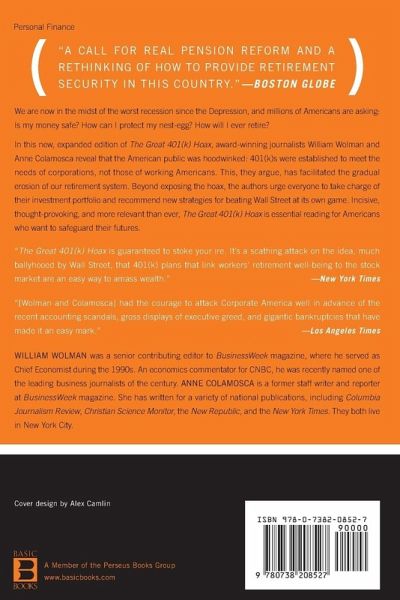 The American public was hoodwinked: 401(k)s were established to satisfy corporations, not the interests of working Americans. Portrayed as a perpetual wealth machine, the 401(k) was meant to satisfy the needs of every employee. Yet, it was an impossible promise to fulfill: It was the great 401(k) hoax. According to William Wolman and Anne Colamosca, this was the latest act in the gradual erosion of the nation's retirement system. Drawing from reams of historical and contemporary data as well as economic, social, and political trends, they reveal the system's troubled 100year history. Beyond exposing the hoax, the authors urge everyone to take charge of their investment portfolio and recommend strategies for beating Wall Street at its own game. Timely and incisive, The Great 401(k) Hoax is guaranteed to inspire debate and action-from the water cooler to the boardroom to the voting booth.