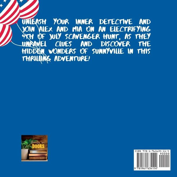 The Great 4th of July Scavenger Hunt Prepare for an exhilarating and patriotic journey through "The Great 4th of July Scavenger Hunt"! Join Alex and Mia, two young adventurers bursting with excitement, as they embark on a thrilling quest that will ignite their imagination and uncover the true spirit of independence. In the charming town of Sunnyville, the annual 4th of July celebration is about to become even more extraordinary. Alex and Mia find themselves caught up in a whirlwind of clues, riddles, and historical mysteries. With each discovery, they are drawn deeper into the heart of the scavenger hunt. As they race against time, their friendship grows more robust, and their determination is unwavering. From the historic courthouse to the park, where the smell of hot dogs fills the air, they follow the trail, fueled by their curiosity and the promise of hidden treasures. But this scavenger hunt is more than just a game. It's an opportunity to learn about the rich history of their nation, the courage of those who fought for freedom, and the power of unity. Along the way, they encounter remarkable landmarks, meet inspiring characters, and unlock the true meaning of independence. Will they solve all the clues in time? Will they discover the secrets that await them at their final destination? Only by joining the adventure can you find out! Are you ready to become a part of "The Great 4th of July Scavenger Hunt"? Grab your magnifying glass, dust off your detective skills, and prepare to uncover the hidden treasures of Sunnyville. Let your imagination soar, embrace the thrill of the chase, and celebrate the joy of independence. The hunt awaits!