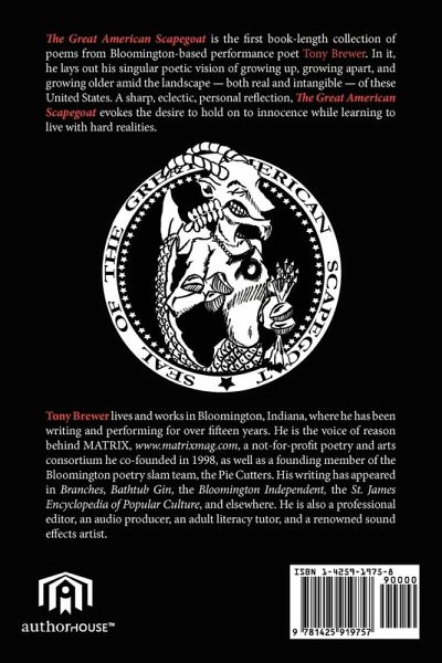 The Great American Scapegoat is the first book-length collection of poems from Bloomington-based performance poet Tony Brewer. In it, he lays out his singular poetic vision of growing up, growing apart, and growing older amid the landscape - both real and intangible - of these United States. A sharp, eclectic, personal reflection, The Great American Scapegoat evokes the desire to hold on to innocence while learning to live with hard realities.