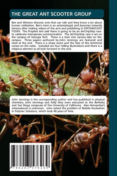 Ben and Winston discover ants that can talk and they know a lot about human civilization. Ben's mom is an entomologist and becomes instantly famous after making videos of the ants and publishing in ENTOMOLOGY TODAY. The Prophet Ant said there is going to be an AirChipShip race to celebrate interspecies communication. The AirChipShip race is set on the campus of Georgia Tech. There is a look into various labs on the campus. Three papers authored by John Jennings are featured and cited at the end. There is a chase scene and the fate of the Antichrist comes on the radio. Included are four telling illustrations and there is a religious element as all look forward to the end.