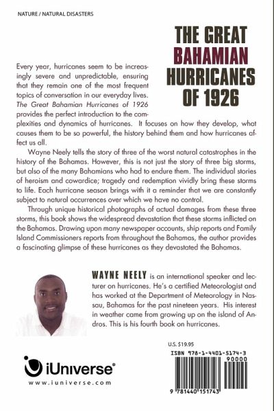 Every year, hurricanes seem to be increasingly severe and unpredictable, ensuring that they remain one of the most frequent topics of conversation in our everyday lives. The Great Bahamian Hurricanes of 1926 provides the perfect introduction to the complexities and dynamics of hurricanes. It focuses on how they develop, what causes them to be so powerful, the history behind them and how hurricanes affect us all. Wayne Neely tells the story of three of the worst natural catastrophes in the history of the Bahamas. However, this is not just the story of three big storms, but also of the many Bahamians who had to endure them. The individual stories of heroism and cowardice; tragedy and redemption vividly bring these storms to life. Each hurricane season brings with it a reminder that we are constantly subject to natural occurrences over which we have no control. Through unique historical photographs of actual damages from these three storms, this book shows the widespread devastation that these storms inflicted on the Bahamas. Drawing upon many newspaper accounts, ship reports and Family Island Commissioners reports from throughout the Bahamas, the author provides a fascinating glimpse of these hurricanes as they devastated the Bahamas.