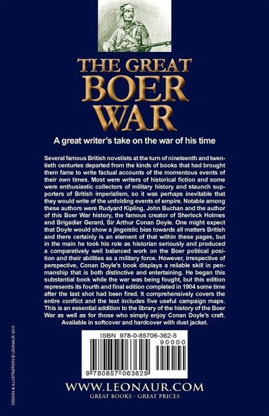 A great writer's take on the war of his time Several famous British novelists at the turn of nineteenth and twentieth centuries departed from the kinds of books that had brought them fame to write factual accounts of the momentous events of their own times. Most were writers of historical fiction and some were enthusiastic collectors of military history and staunch supporters of British imperialism, so it was perhaps inevitable that they would write of the unfolding events of empire. Notable among these authors were Rudyard Kipling, John Buchan and the author of this Boer War history, the famous creator of Sherlock Holmes and Brigadier Gerard, Sir Arthur Conan Doyle. One might expect that Doyle would show a jingoistic bias towards all matters British and there certainly is an element of that within these pages, but in the main he took his role as historian seriously and produced a comparatively well balanced work on the Boer political position and their abilities as a military force. However, irrespective of perspective, Conan Doyle's book displays a reliable skill in penmanship that is both distinctive and entertaining. He began this substantial book while the war was being fought, but this edition represents its fourth and final edition completed in 1904 some time after the last shot had been fired. It comprehensively covers the entire conflict and the text includes five useful campaign maps. This is an essential addition to the library of the history of the Boer War as well as for those who simply enjoy Conan Doyle's craft. Available in softcover and hardcover with dust jacket.