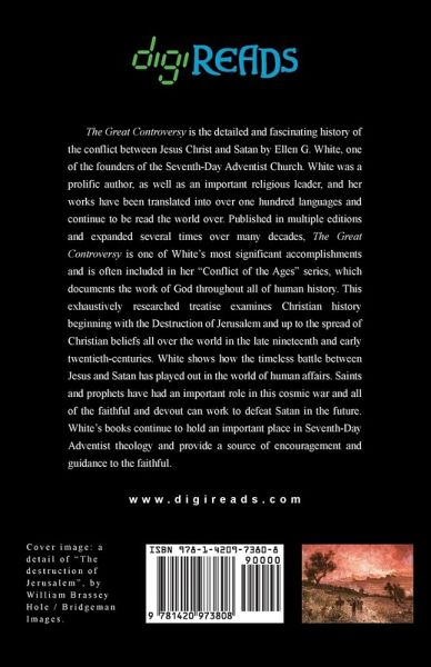 "The Great Controversy" is the detailed and fascinating history of the conflict between Jesus Christ and Satan by Ellen G. White, one of the founders of the Seventh-Day Adventist Church. White was a prolific author, as well as an important religious leader, and her works have been translated into over one hundred languages and continue to be read the world over. Published in multiple editions and expanded several times over many decades, "The Great Controversy" is one of White's most significant accomplishments and is often included in her "Conflict of the Ages" series, which documents the work of God throughout all of human history. This exhaustively researched treatise examines Christian history beginning with the Destruction of Jerusalem and up to the spread of Christian beliefs all over the world in the late nineteenth and early twentieth-centuries. White shows how the timeless battle between Jesus and Satan has played out in the world of human affairs. Saints and prophets have had an important role in this cosmic war and all of the faithful and devout can work to defeat Satan in the future. White's books continue to hold an important place in Seventh-Day Adventist theology and provide a source of encouragement and guidance to the faithful. This edition is printed on premium acid-free paper.