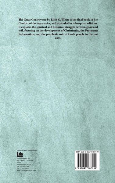 The Great Controversy by Ellen G. White is the final book in her Conflict of the Ages series, and expanded in subsequent editions. It explores the spiritual and historical struggle between good and evil, focusing on the development of Christianity, the Protestant Reformation, and the prophetic role of God's people in the last days.