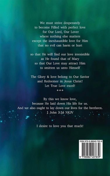 We must strive desperatelyto become Filled with perfect lovefor Our Lord, Our Loverwhere nothing else mattersexcept the inexhaustible love for Himthat no evil can harm or hurtso that He will find our love irresistibleas He found that of Maryso that Our Love may attract Himto smitten us unto HimselfThe Glory & love belong to Our Saviorand Redeemer in Jesus Christ!Let True Love excel!+++By this we know love,because He laid down His life for us.And we also ought to lay down our lives for the brethren.1 John 3:16 NKJVI desire to love you that much!