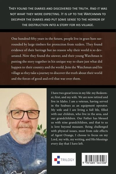 They found the diaries and discovered the truth. And it was not what they were expecting. It is up to the Watchman to decipher the diaries and put some sense to the horror of the destruction into a story for his village. One hundred fifty years in the future, people live in grass huts surrounded by large timbers for protection from raiders. They found evidence of their heritage but no reason why their world is so devastated. Now they found the answer, and their young Watchman is putting the story together in his unique way to share just what did happen to their country and the world. Join the Watchman and his village as they take a journey to discover the truth about their world and the forces of good and evil that war over them.