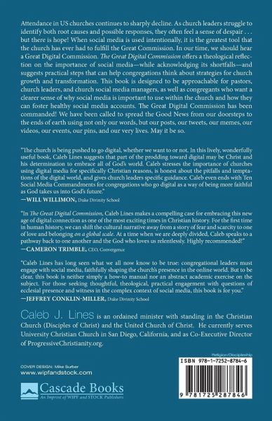 Attendance in US churches continues to sharply decline. As church leaders struggle to identify both root causes and possible responses, they often feel a sense of despair . . . but there is hope! When social media is used intentionally, it is the greatest tool that the church has ever had to fulfill the Great Commission. In our time, we should hear a Great Digital Commission. The Great Digital Commission offers a theological reflection on the importance of social media--while acknowledging its shortfalls--and suggests practical steps that can help congregations think about strategies for church growth and transformation. This book is designed to be approachable for pastors, church leaders, and church social media managers, as well as congregants who want a clearer sense of why social media is important to use within the church and how they can foster healthy social media accounts. The Great Digital Commission has been commanded! We have been called to spread the Good News from our doorsteps to the ends of earth using not only our words, but our posts, our tweets, our memes, our videos, our events, our pins, and our very lives. May it be so.