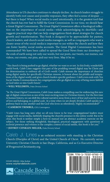 Attendance in US churches continues to sharply decline. As church leaders struggle to identify both root causes and possible responses, they often feel a sense of despair . . . but there is hope! When social media is used intentionally, it is the greatest tool that the church has ever had to fulfill the Great Commission. In our time, we should hear a Great Digital Commission. The Great Digital Commission offers a theological reflection on the importance of social media--while acknowledging its shortfalls--and suggests practical steps that can help congregations think about strategies for church growth and transformation. This book is designed to be approachable for pastors, church leaders, and church social media managers, as well as congregants who want a clearer sense of why social media is important to use within the church and how they can foster healthy social media accounts. The Great Digital Commission has been commanded! We have been called to spread the Good News from our doorsteps to the ends of earth using not only our words, but our posts, our tweets, our memes, our videos, our events, our pins, and our very lives. May it be so.