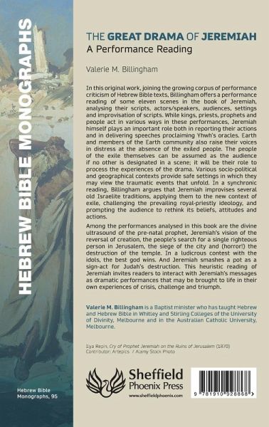 In this original work, joining the growing corpus of performance criticism of Hebrew Bible texts, Billingham offers a performance reading of some eleven scenes in the book of Jeremiah, analysing their scripts, actors/speakers, audiences, settings and improvisation of scripts. While kings, priests, prophets and people act in various ways in these performances, Jeremiah himself plays an important role both in reporting their actions and in delivering speeches proclaiming Yhwh's oracles. Earth and members of the Earth community also raise their voices in distress at the absence of the exiled people. The people of the exile themselves can be assumed as the audience if no other is designated in a scene; it will be their role to process the experiences of the drama. Various socio-political and geographical contexts provide safe settings in which they may view the traumatic events that unfold. In a synchronic reading, Billingham argues that Jeremiah improvises several old Israelite traditions, applying them to the new context of exile, challenging the prevailing royal-priestly ideology, and prompting the audience to rethink its beliefs, attitudes and actions. Among the performances analysed in this book are the divine ultrasound of the pre-natal prophet, Jeremiah's vision of the reversal of creation, the people's search for a single righteous person in Jerusalem, the siege of the city and (horror!) the destruction of the temple. In a ludicrous contest with the idols, the best god wins. And Jeremiah smashes a pot as a sign-act for Judah's destruction. This heuristic reading of Jeremiah invites readers to interact with Jeremiah's messages as dramatic performances that may be brought to life in their own experiences of crisis, challenge and triumph.