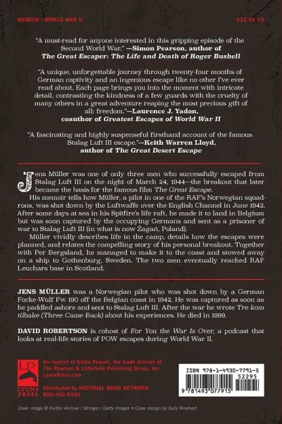A thrilling, first-person account of one of the most famous prison escapes of World War II. Jens Müller was one of only three men who successfully escaped from Stalag Luft III on the night of March 24, 1944—the breakout that later became the basis for the famous film The Great Escape. His memoir tells how Müller, a pilot in one of the RAF’s Norwegian squadrons, was shot down by the Luftwaffe over the English Channel in June 1942. After some days at sea in his Spitfire’s life raft, he made it to land in Belgium but was soon captured by the occupying Germans and sent as a prisoner of war to Stalag Luft III (in what is now Zagan, Poland). Müller vividly describes life in the camp, how the escapes were planned, and relates the compelling story of his personal breakout. Together with Per Bergsland, he managed to make it to the coast and stowed away on a ship to Gothenburg, Sweden. The two men eventually reached RAF Leuchars base in Scotland.