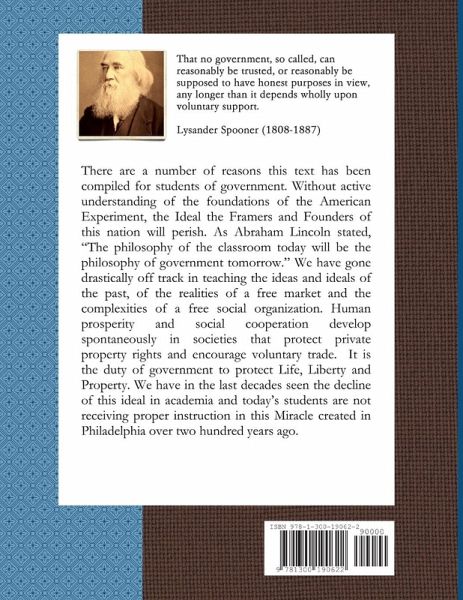 A free-market text on the emergence in America of a Great Experiment. Stemming from Alexander Hamilton's statememnt in Federalist #1 and stated two centuries later by Ronald Reagan: "Freedom is never more than one generation away from extinction. We didn't pass it to our children in the bloodstream. It must be fought for, protected, and handed on for them to do the same, or one day we will spend our sunset years telling our children and our children's children what it was once like in the United States where men were free." Hamilton wondered if men were capable of ruling themselves. This text deals with that hope and duty and my attempts over the years to express to my students a spark to relight that fire the Framers and Founders felt when creating the greatest experiment in freedom the world has seen.