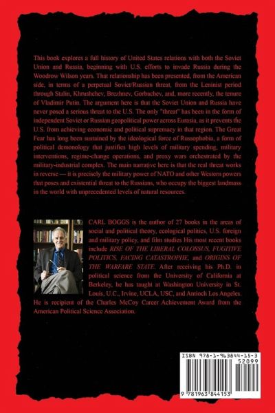 This book explores a full history of United States relations with both the Soviet Union and Russia, beginning with U.S. efforts to invade Russia during the Woodrow Wilson years. That relationship has been presented, from the American side, in terms of a perpetual Soviet/Russian threat, from the Leninist period through Stalin, Khrushchev, Brezhnev, Gorbachev, and, more recently, the tenure of Vladimir Putin. The argument here is that the Soviet Union and Russia have never posed a serious threat to the U.S. The only "threat" has been in the form of independent Soviet or Russian geopolitical power across Eurasia, as it prevents the U.S. from achieving economic and political supremacy in that region. The Great Fear has long been sustained by the ideological force of Russophobia, a form of political demonology that justifies high levels of military spending, military interventions, regime-change operations, and proxy wars orchestrated by the military-industrial complex. The main narrative here is that the real threat works in reverse -- it is precisely the military power of NATO and other Western powers that poses and existential threat to the Russians, who occupy the biggest landmass in the world with unprecedented levels of natural resources.