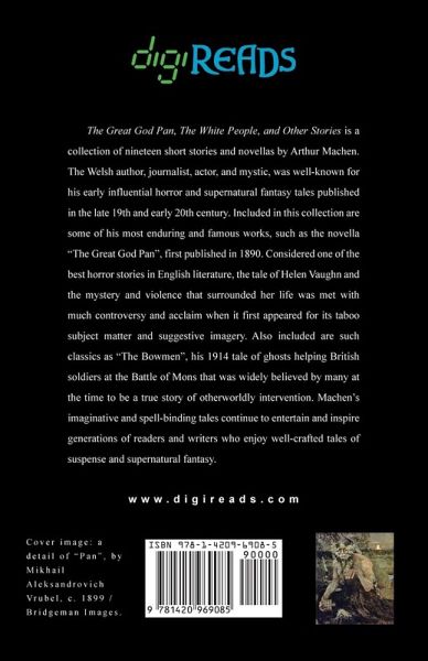 "The Great God Pan, The White People, and Other Stories" is a collection of nineteen short stories and novellas by Arthur Machen. The Welsh author, journalist, actor, and mystic, was well-known for his early influential horror and supernatural fantasy tales published in the late 19th and early 20th century. Included in this collection are some of his most enduring and famous works, such as the novella "The Great God Pan", first published in 1890. Considered one of the best horror stories in English literature, the tale of Helen Vaughn and the mystery and violence that surrounded her life was met with much controversy and acclaim when it first appeared for its taboo subject matter and suggestive imagery. Also included are such classics as "The Bowmen", his 1914 tale of ghosts helping British soldiers at the Battle of Mons that was widely believed by many at the time to be a true story of otherworldly intervention. Machen’s imaginative and spell-binding tales continue to entertain and inspire generations of readers and writers who enjoy well-crafted tales of suspense and supernatural fantasy. This edition is printed on premium acid-free paper.