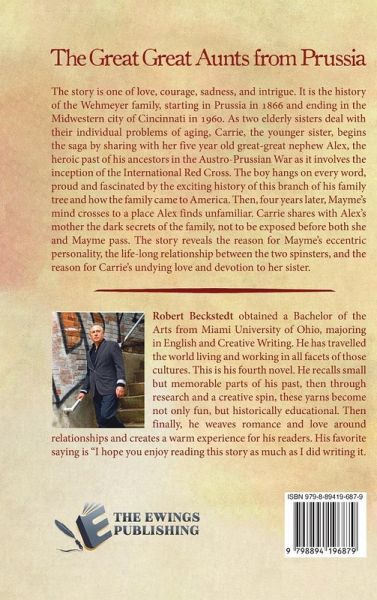 The story is one of love, courage, sadness, and intrigue. It is the history of the Wehmeyer family, starting in Prussia in 1866 and ending in the Midwestern city of Cincinnati in 1960. As two elderly sisters deal with their individual problems of aging, Carrie, the younger sister, begins the saga by sharing with her five year old great-great nephew Alex, the heroic past of his ancestors in the Austro-Prussian War as it involves the inception of the International Red Cross. The boy hangs on every word, proud and fascinated by the exciting history of this branch of his family tree and how the family came to America. Then, four years later, Mayme's mind crosses to a place Alex finds unfamiliar. Carrie shares with Alex's mother the dark secrets of the family, not to be exposed before both she and Mayme pass. The story reveals the reason for Mayme's eccentric personality, the life-long relationship between the two spinsters, and the reason for Carrie's undying love and devotion to her sister.