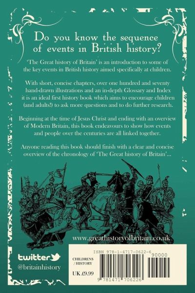 'The Great history of Britain' is an introduction to some of the key events in British history aimed specifically at children. With short, concise chapters, over one hundred and seventy hand-drawn illustrations and an in-depth Glossary and Index it is an ideal first history book which aims to encourage children (and adults!) to ask more questions and to do further research. Beginning at the time of Jesus Christ and ending with an overview of Modern Britain, this book endeavours to show how events and people over the centuries are all linked together. Anyone reading this book should finish with a clear and concise overview of the chronology of 'The Great history of Britain'.