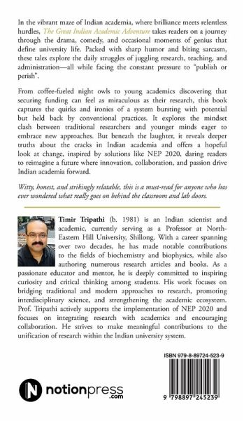 In the vibrant maze of Indian academia, where brilliance meets relentless hurdles, The Great Indian Academic Adventure takes readers on a journey through the drama, comedy, and occasional moments of genius that define university life. Packed with sharp humor and biting sarcasm, these tales explore the daily struggles of juggling research, teaching, and administration-all while facing the constant pressure to "publish or perish". From coffee-fueled night owls to young academics discovering that securing funding can feel as miraculous as their research, this book captures the quirks and ironies of a system bursting with potential but held back by conventional practices. It explores the mindset clash between traditional researchers and younger minds eager to embrace new approaches. But beneath the laughter, it reveals deeper truths about the cracks in Indian academia and offers a hopeful look at change, inspired by solutions like NEP 2020, daring readers to reimagine a future where innovation, collaboration, and passion drive Indian academia forward. Witty, honest, and strikingly relatable, this is a must-read for anyone who has ever wondered what really goes on behind the classroom and lab doors.