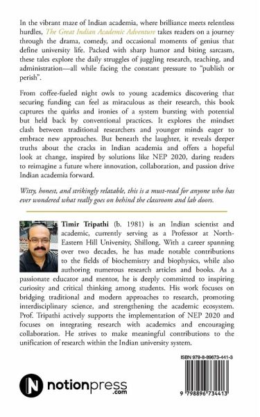 In the vibrant maze of Indian academia, where brilliance meets relentless hurdles, The Great Indian Academic Adventure takes readers on a journey through the drama, comedy, and occasional moments of genius that define university life. Packed with sharp humor and biting sarcasm, these tales explore the daily struggles of juggling research, teaching, and administration-all while facing the constant pressure to "publish or perish". From coffee-fueled night owls to young academics discovering that securing funding can feel as miraculous as their research, this book captures the quirks and ironies of a system bursting with potential but held back by conventional practices. It explores the mindset clash between traditional researchers and younger minds eager to embrace new approaches. But beneath the laughter, it reveals deeper truths about the cracks in Indian academia and offers a hopeful look at change, inspired by solutions like NEP 2020, daring readers to reimagine a future where innovation, collaboration, and passion drive Indian academia forward. Witty, honest, and strikingly relatable, this is a must-read for anyone who has ever wondered what really goes on behind the classroom and lab doors.