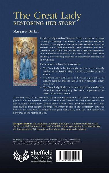 The Great Lady of the Jerusalem temple was a defining presence in the religion of ancient Israel, yet she has been almost erased from the official biblical narrative. Only in recent years have her eclipse, and her shadowy enduring presence, been noticed and understood. In a diligent but daring and incisive approach to texts and material evidence, Margaret Barker begins a comprehensive restoration of the Lady's story. As Barker has shown in her earlier books, a drive to expel the Lady, revered as Mother of the Davidic kings, culminated in King Josiah's purge in 623 BCE. Moses and the Law became central for the post-exilic faithful; Enochic voices called them the apostate generation; and the Hebrew Scriptures were edited by their scribes. Memories remained, but have been identified as later additions. In this volume Barker shows the Lady and her Son hidden beneath the rewritten Scriptures. Her devotees, Isaiah and his disciples, fled to 'Arabia'. They preserved her ways and wisdom. These Melchizedek priests were Matthew's Magi with symbols of their temple. The Lady's most faithful son was Jesus of Nazareth, who restored the older faith. The Lady's ancient titles appear in Christian hymns to Mary, the Mother of God. The New Testament is in fact the Older Testament. The Great Lady: Restoring her Story is the second volume in a trilogy. It reveals the Lady in the Book of Revelation giving birth to her Son in the temple, and how her teaching underlies the Beatitudes. The first volume The Mother of the Lord was published in 2012. A third volume, The Oracle Page, will show how some newly-discovered leadbooks encode the older world of the Lady and her Son.