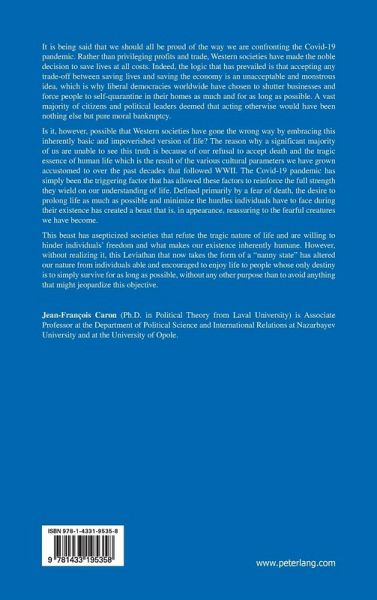This beast has asepticized societies that refute the tragic nature of life and are willing to hinder individuals' freedom and what makes our existence inherently humane. However, without realizing it, this Leviathan that now takes the form of a "nanny state" has altered our nature from individuals able and encouraged to enjoy life to people whose only destiny is to simply survive for as long as possible, without any other purpose than to avoid anything that might jeopardize this objective.