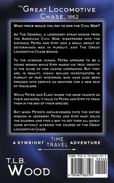 "Kip and Petra, the bonded, time-traveling Symbiont pair, are enthralling." - Laura, verified reviewer What price would you pay to end the Civil War? As The General, a legendary steam engine from the American Civil War, disappears into the distance, Petra and Kipp join a small group of determined men in pursuit, and The Great Locomotive Chase begins. To the average human, Petra appears to be a young woman while Kipp masks his true identity in the guise of her canine companion. But they are, in reality, highly skilled investigators in pursuit of past mysteries, who have also been pressed into…mehr