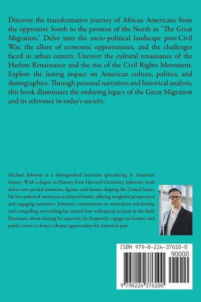 Discover the transformative journey of African Americans from the oppressive South to the promise of the North in "The Great Migration." Delve into the socio-political landscape post-Civil War, the allure of economic opportunities, and the challenges faced in urban centers. Uncover the cultural renaissance of the Harlem Renaissance and the rise of the Civil Rights Movement. Explore the lasting impact on American culture, politics, and demographics. Through personal narratives and historical analysis, this book illuminates the enduring legacy of the Great Migration and its relevance in today's society.