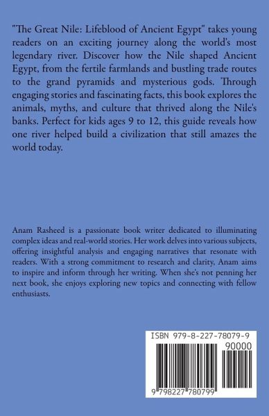 "The Great Nile: Lifeblood of Ancient Egypt" takes young readers on an exciting journey along the world's most legendary river. Discover how the Nile shaped Ancient Egypt, from the fertile farmlands and bustling trade routes to the grand pyramids and mysterious gods. Through engaging stories and fascinating facts, this book explores the animals, myths, and culture that thrived along the Nile's banks. Perfect for kids ages 9 to 12, this guide reveals how one river helped build a civilization that still amazes the world today.