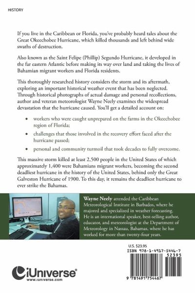 If you live in the Caribbean or Florida, you've probably heard tales about the Great Okeechobee Hurricane, which killed thousands and left behind wide swaths of destruction. Also known as the Saint Felipe (Phillip) Segundo Hurricane, it developed in the far eastern Atlantic before making its way over land and taking the lives of Bahamian migrant workers and Florida residents. This thoroughly researched history considers the storm and its aftermath, exploring an important historical weather event that has been neglected. Through historical photographs of actual damage and personal recollections, author and veteran meteorologist Wayne Neely examines the widespread devastation that the hurricane caused. You'll get a detailed account on: ¿ workers who were caught unprepared on the farms in the Okeechobee region of Florida; ¿ challenges that those involved in the recovery effort faced after the hurricane passed; ¿ personal and community turmoil that took decades to fully overcome. This massive storm killed at least 2,500 people in the United States of which approximately 1,400 were Bahamians migrant workers, becoming the second deadliest hurricane in the history of the United States, behind only the Great Galveston Hurricane of 1900. To this day, it remains the deadliest hurricane to ever strike the Bahamas.
