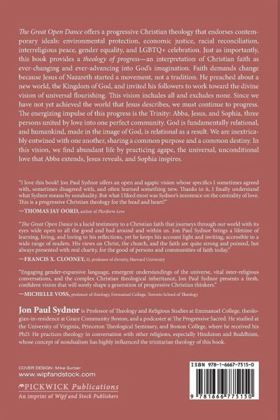The Great Open Dance offers a progressive Christian theology that endorses contemporary ideals: environmental protection, economic justice, racial reconciliation, interreligious peace, gender equality, and LGBTQ+ celebration. Just as importantly, this book provides a theology of progress--an interpretation of Christian faith as ever-changing and ever-advancing into God's imagination. Faith demands change because Jesus of Nazareth started a movement, not a tradition. He preached about a new world, the Kingdom of God, and invited his followers to work toward the divine vision of universal flourishing. This vision includes all and excludes none. Since we have not yet achieved the world that Jesus describes, we must continue to progress. The energizing impulse of this progress is the Trinity: Abba, Jesus, and Sophia, three persons united by love into one perfect community. God is fundamentally relational, and humankind, made in the image of God, is relational as a result. We are inextricably entwined with one another, sharing a common purpose and a common destiny. In this vision, we find abundant life by practicing agape, the universal, unconditional love that Abba extends, Jesus reveals, and Sophia inspires.