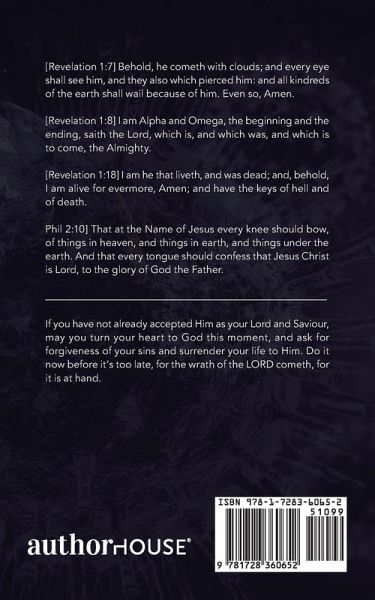 [Revelation 1:7] Behold, he cometh with clouds; and every eye shall see him, and they also which pierced him: and all kindreds of the earth shall wail because of him. Even so, Amen. [Revelation 1:8] I am Alpha and Omega, the beginning and the ending, saith the Lord, which is, and which was, and which is to come, the Almighty. [Revelation 1:18] I am he that liveth, and was dead; and, behold, I am alive for evermore, Amen; and have the keys of hell and of death. Phil 2:10] That at the Name of Jesus every knee should bow, of things in heaven, and things in earth, and things under the earth. And that every tongue should confess that Jesus Christ is Lord, to the glory of God the Father. If you have not already accepted Him as your Lord and Saviour, may you turn your heart to God this moment, and ask for forgiveness of your sins and surrender your life to Him. Do it now before it's too late, for the wrath of the LORD cometh, for it is at hand.