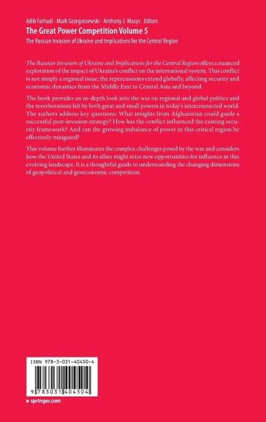 1. Great Power Competition Russia's Invasion of Ukraine.- 2. How the Ukraine war will impact U.S Special Force Operations.- 3. The Impact of Ukraine War on the Middle East in the Context of Great Power Competition.- 4. Great Power Competition and the Russian Invasion of Ukraine.- 5. Understanding the Mental Health of Ukrainian Refugees in Europe.- 6. Learning the wrong lessons from Russia's invasion: Russia's cyberspace lessons learned.- 7. Why Putin Gambled on Russian Military Mobilization.- 8. Great Power Clashes Will Reshape America: Case Study of Ukraine.- 9. The Effect of the Ukrainian War on Central Asia.- 10. Russia's Invasion and the U.S. Response: The view from the Middle East and Central Asia.- 11. Is Russia Fascist? Unravelling Propaganda East and West on the Ukrainian conflict.- 12. How the Ukraine invasion will impact Russia-Iran relations.- 13. Security in the 21st Century: Democracy and Transatlantic Values in an Age of Great Power Competition.- 14. Learning the wrong lessons from Russia's invasion: Russia's cyberspace lessons learned.- 15. Ukraine: An examination of the evolving humanitarian crisis.- 16. Russia-Ukraine crisis: China's Belt Road Initiative Role.- 17. Success or Failure: Intelligence in Ukraine and what it Signals for the Future.- 18. Moral Injury and Moral Crisis in Ukraine.- 19. How China-U.S. Cooperation will impact the Ukraine War.- 20. Weighing the Costs of War and Peace in Ukraine.