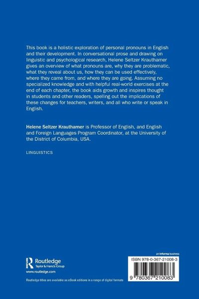 This book is a holistic exploration of personal pronouns in English and their development. In conversational prose and drawing on linguistic and psychological research, Helene Seltzer Krauthamer gives an overview of what pronouns are, why they are problematic, what they reveal about us, how they can be used effectively, where they came from, and where they are going. Assuming no specialized knowledge and with helpful real-world exercises at the end of each chapter, the book aids growth and inspires thought in students and other readers, spelling out the implications of these changes for teachers, writers, and all who write or speak in English.
