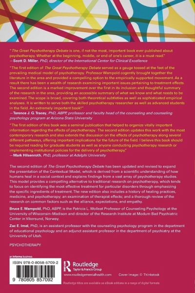 "In the first edition Wampold challenged the long-held belief that psychotherapy can best be understood from a medical model and by using a balanced and carefully selected set of studies, he presented a radical new approach, namely the contextual model, to understanding why psychotherapy works. This second addition updates this work by bringing together the wealth of research examining important issues pertaining to treatment effects since the publication of the first edition and by providing an accessible summary of what we know and what needs to be examined. [...] This new edition of The Great Psychotherapy Debate, with its inclusion of history of healing practices, medicine and psychotherapy and a thoughtful review and summary of the research in the area on common factors such as the alliance, expectations and empathy, updates the work that started in the first edition greatly, and extends the discussion on the effects of psychotherapy along different pathways, offering important implications for the future of the field. Because the scope of the book is broad enough to cover both theoretical and historical issues and also thorough, sophisticated empirical analyses, it is of use for both a psychotherapist in the field or a skilled psychotherapy researcher as well as an advanced psychology or counseling student. I heartily recommend this book for any graduate course on psychotherapy and also for anyone who wants to conduct psychotherapy research."