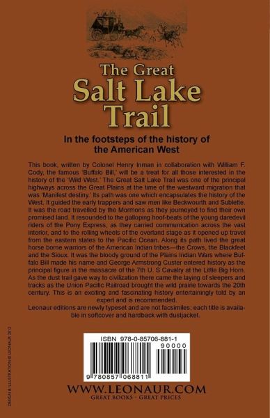 In the footsteps of the history of the American West This book, written by Colonel Henry Inman in collaboration with William F. Cody, the famous 'Buffalo Bill,' will be a treat for all those interested in the history of the 'Wild West.' The Great Salt Lake Trail was one of the principal highways across the Great Plains at the time of the westward migration that was 'Manifest destiny.' Its path was one which encapsulates the history of the West. It guided the early trappers and saw men like Beckwourth and Sublette. It was the road travelled by the Mormons as they journeyed to find their own promised land. It resounded to the galloping hoof-beats of the young daredevil riders of the Pony Express, as they carried communication across the vast interior, and to the rolling wheels of the overland stage as it opened up travel from the eastern states to the Pacific Ocean. Along its path lived the great horse borne warriors of the American Indian tribes-the Crows, the Blackfeet and the Sioux. It was the bloody ground of the Plains Indian Wars where Buffalo Bill made his name and George Armstrong Custer entered history as the principal figure in the massacre of the 7th U. S Cavalry at the Little Big Horn. As the dust trail gave way to civilization there came the laying of sleepers and tracks as the Union Pacific Railroad brought the wild prairie towards the 20th century. This is an exciting and fascinating history entertainingly told by an expert and is recommended. Leonaur editions are newly typeset and are not facsimiles; each title is available in softcover and hardback with dustjacket.