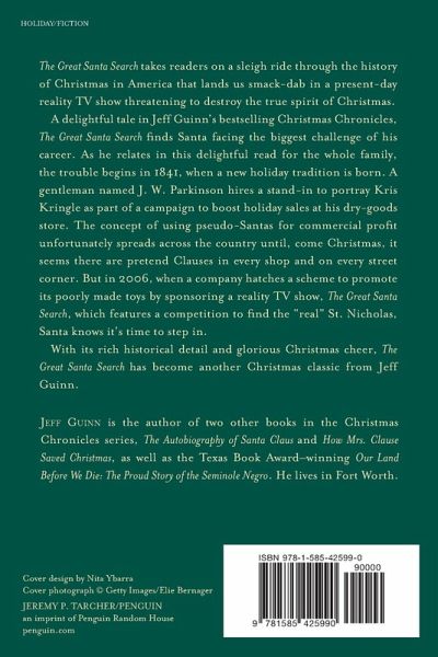 This follow-up to Jeff Guinn's bestselling holiday favorites The Autobiography of Santa Claus and How Mrs. Claus Saved Christmas takes readers on a sleigh ride through the history of Christmas in America that lands smack-dab in 2006, as a new reality TV show threatens to destroy the true spirit of Christmas. This third installment in Jeff Guinn's bestselling Christmas Chronicles series finds Santa facing perhaps the biggest challenge of his career. As Santa himself relates in this delightful holiday read, the trouble began in 1841, when a Philadelphia merchant named J.W. Parkinson hired a neighbor to dress as Kris Kringle in order to lure shoppers into his dry-goods store. Much to Santa's chagrin, it's been pretty much downhill since. It seems everybody wants a piece of Christmas, and through the years, it has gotten worse—to the point that not a Christmas can go by without phony Santas posing on street corners across the country. But when, in 2006, it's announced that a new reality TV show called The Great Santa Search will feature a competition to find the "real" St. Nicholas, Santa knows it's time to step in! With all the rich historical detail and glorious Christmas cheer that made The Autobiography of Santa Claus and How Mrs. Claus Saved Christmas treasured family favorites, The Great Santa Search is destined to become yet another Christmas classic from Jeff Guinn.