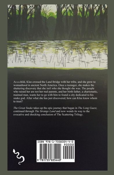 As a child, Klee crossed the Land Bridge with her tribe, and she grew to womanhood in ancient North America. Once a teenager, she makes the shattering discovery that she isn't who she thought she was. The people who raised her are not her real parents, and her birth father, a charismatic, maimed man, wants her to go with him to found a city dedicated to his snake god. After what she has just discovered, how can Klee know whom to trust? The Great Snake is a coming-of-age tale set in ancient North America. Touching on post-apocalyptic survival, mysticism, and a saga of complex family relationships, it takes up the epic journey that began in The Long Guest, continued through The Strange Land and now wends its way to the evocative and shocking conclusion of the Scattering Trilogy.