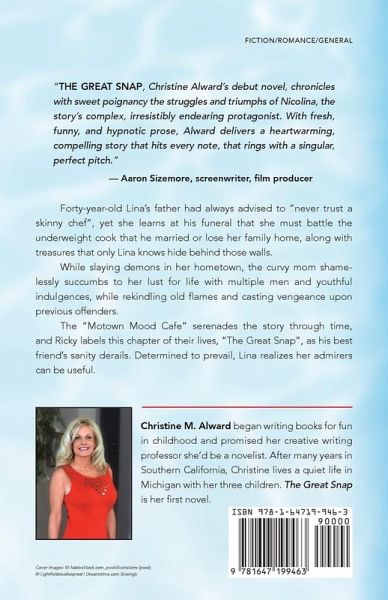 Forty-year-old Lina's father had always advised to "never trust a skinny chef", yet she learns at his funeral that she must battle her underweight, food truck owning, new stepmother, or risk losing her childhood home, along with treasures that only Lina knows hide behind those walls. When Lina's sanity derails before her best friend Ricky's eyes, he labels this chapter of their lives, "The Great Snap", as she battles more demons than just her step-mother and adulterous husband, while raising young twins and readjusting to life in suburban Detroit, after twenty years away. Feeling powerless, the curvy blonde shamelessly succumbs to her lust for life with multiple men and youthful indulgences, while rekindling old flames and casting vengeance upon previous offenders. Determined to take back what is hers, she realizes her admirers can be useful. The Motown Mood Cafe, owned by Lina's lesbian mother figures, serenades the story through time, as the same town residents are followed through the past, and connected in the future. The circle of mid-life swirls through generations at the mystical age of forty, and the two devoted friends look for courage, in search of their next 'great'.