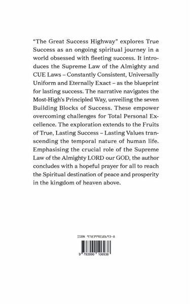 Discover lasting success in ¿The Great Success Highway.¿ Unveil the Supreme Law and CUE Laws, your blueprint for excellence. Overcome challenges, attain Total Personal Excellence and embrace transcendent values. Find peace and prosperity in the divine Kingdom.