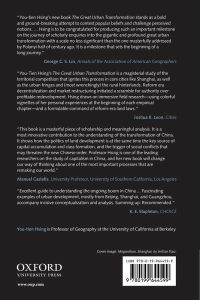 As China is transformed, relations between society, the state, and the city have become central. The Great Urban Transformation investigates what is happening in cities, the urban edges, and the rural fringe in order to explain these relations. In the inner city of major metropolitan centers, municipal governments battle high-ranking state agencies to secure land rents from redevelopment projects, while residents mobilize to assert property and residential rights. At the urban edge, as metropolitan governments seek to extend control over their rural hinterland through massive-scale development projects, villagers strategize to profit from the encroaching property market. At the rural fringe, township leaders become brokers of power and property between the state bureaucracy and villages, while large numbers of peasants are dispossessed, dispersed, and deterritorialized, and their mobilizational capacity is consequently undermined. The Great Urban Transformation explores these issues, and provides an integrated analysis of the city and the countryside, elite politics and grassroots activism, legal-economic and socio-political issues of property rights, and the role of the state and the market in the property market.