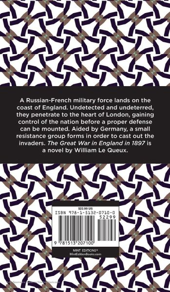 The Great War in England in 1897 (1894) is a novel by Anglo-French writer William Le Queux. Published at the height of Le Queux's career as a leading author of popular thrillers, The Great War in England in 1897 is a story of broken alliances, resistance, and international conflict. Using his own research and experience as a journalist and adventurer, Le Queux crafts an accessible, entertaining world for readers in search of a literary escape. Known for his works of fiction and nonfiction on the possibility of Germany invading Britain-a paranoia common in the early twentieth century-William Le Queux also wrote dozens of thrillers and adventure novels for a dedicated public audience. Although critical acclaim eluded him, popular success made him one of England's bestselling writers. In The Great War in England in 1897, a large Russian-French occupying force lands undetected on the coast of England. Having formed an alliance in secret, they make swift gains across England until reaching London, which they take control of with little difficulty. Shocked, defeated, and hemorrhaging hope by the day, the people of England look for their leaders to do anything to reverse their fate. Working in the shadows, a small resistance movement begins taking shape, eventually forming an alliance with Germany in order to not only free England of its occupation, but force France and Russia to retreat from their colonial gains around the world. Despite being rejected as alarmist in its time, The Great War in England in 1897 would prove prescient less than a decade after its publication with the outbreak of the First World War. Although Le Queux would revisit the theme of invasion throughout his career, his 1906 novel The Invasion of 1910 would virtually reverse the circumstances of The Great War in England in 1897, having Germany take over the country instead. This edition of William Le Queux's The Great War in England in 1897 is a classic novel reimagined for modern readers. Since our inception in 2020, Mint Editions has kept sustainability and innovation at the forefront of our mission. Each and every Mint Edition title gets a fresh, professionally typeset manuscript and a dazzling new cover, all while maintaining the integrity of the original book. With thousands of titles in our collection, we aim to spotlight diverse public domain works to help them find modern audiences. Mint Editions celebrates a breadth of literary works, curated from both canonical and overlooked classics from writers around the globe.